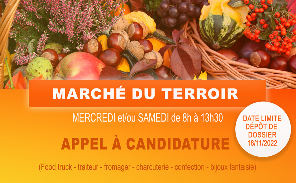 APPEL A CANDIDATURE – marché du terroir La commune souhaite développer son marché du terroir du mercredi et du samedi qui se déroule, de 8h à 13h30 : mercredi – place José Thomas au village samedi – place Saint-Jean Souhaitant diversifier l’offre actuelle, nous lançons un appel à candidature aux commerçants non sédentaires, producteurs ou […]