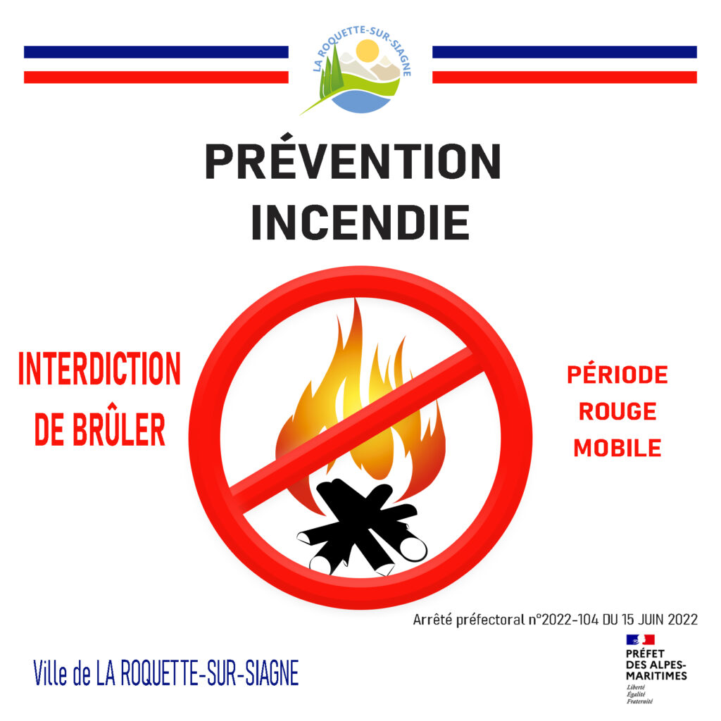 L’arrêté préfectoral n°2022-104 du 15 juin 2022 ordonne une interdiction de brûler et passe la commune en période rouge mobile.